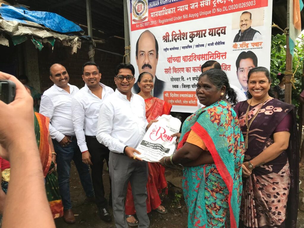 मुंबई : राष्ट्रीय कार्याध्यक्ष एव नेवी ऑफिसर/उद्योजक दिनेश कुमार यादव के जन्मदिन उन्होंने सामाजिक कार्य को ध्यान में रखके ऊस अवसर पे सारी एवं खाद्य पदार्थ वितरण का कार्यक्रम आयोजित किया गया हैं. यह कार्यक्रम दिनांक 10/9/024 आयोजित किया गया था वहां पर उपस्थित मुख्य मार्गदर्शक एवं कल्याण विधानसभा पश्चिम आमदार नरेंद्र पवार, राष्ट्रीय अध्यक्ष दिनेश रमाशंकर गुप्ता,