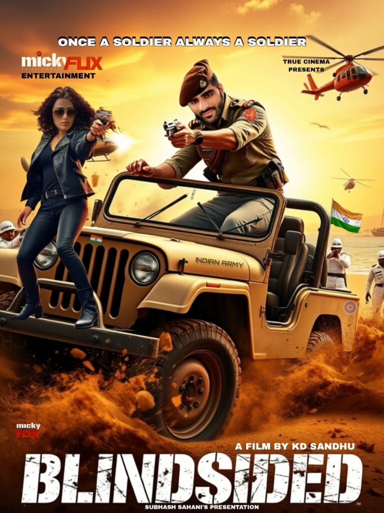 मिकी फिल्म्स एंटरटेनमेंट और केडी आर्ट्स फिल्म्स इंटरनेशनल सहयोग से बनी फिल्म ब्लाइंडसाइडेड इस होली के अवसर पर रिलीज होने वाली है। यह एक एक्शन थ्रिलर और ड्रामा फिल्म है वर्तमान समय में युवाओं को ऐसी ही फिल्में बेहद पसंद आते हैं। इस फिल्म में देशभक्ति और रोमांस का समावेश है। फिल्म की शुरुआत में आतंकवादी अल हसन मिजरी को दिखाया जाता है जो एक सिंडिकेट की सहायता से न्यूक्लियर वेपन खरीदकर भारत को बर्बाद करना चाहता है लेकिन उसकी इस ख्वाहिश को एक रॉ एजेंट धूल में मिला देती है। इधर भारत की फौज भी अल हसन को ढूंढ रही है। ऐसे समय में सोल्जर जयदीप सिंह (उधय बीर सिंधु) को अल हसन के ठिकाने की सूचना मिलती है वह उसकी खोज में इस मुहिम में आगे बढ़ता है लेकिन इस मिशन में जाकर उसे पता चलता है कि यह एक जाल है। तब तक बहुत देर हो जाती है जिससे जयदीप को अपनी आंखें खोनी पड़ती है। कहानी दो साल आगे बढ़ती है जिसमें जयदीप अपनी प्रेमिका जेनिफर के साथ खुश है और इंतेजार कर रहा है कि एक दिन उनकी आंखें ठीक हो जाये। इसी बीच रोलेक्स नाम के सिंडिकेट का सरगना उस रॉ एजेंट को ढूंढ रहा है जिसने उनके करोड़ो के हीरे और ब्लू प्रिंट चुराए जिससे अल हसन और उसके बीच होने वाले न्यूक्लियर सौदा नहीं हो पाया था। इसके लिए वह अपने एक सदस्य सोफिया को खोजबीन के लिए भेजता है तब एक रहस्य पता चलता है कि जयदीप की प्रेमिका ही वह रॉ एजेंट थी जिसने रोलेक्स के अरमानों को चकनाचूर किया था। सोफिया जेनीफर तक पहुंच जाती है दोनों के बीच घमासान फाइट होती है जिसमें जेनीफर मारी जाती है, तभी जयदीप वहाँ आता है फिर कहानी में नया मोड़ आता है। क्या जयदीप जेनिफर के बारे में जानता था? क्या रोलेक्स को हीरों का पता लग पाया? क्या अंधा सोल्जर इस खतरनाक विलेन रोलेक्स का सामना कर सकेगा? ऐसे कई राज फिल्म देखने पर पता चलेगा। कहानी में देशभक्ति, ड्रामा, एक्शन भरी हुई है। डायलॉग सुने सुनाये हैं, इनमें पंच की कमी है। फिल्म के गाने कर्णप्रिय हैं जो युवाओं को पसंद आएंगे। फिल्मांकन और निर्देशन में कुछ कमियां साफ झलकती है। फीमेल एक्टर के बीच का जबरदस्त एक्शन फिल्माया गया है। देखा जाए तो फिल्म में कलाकारों की मेहनत साफ दिखाई देती है।