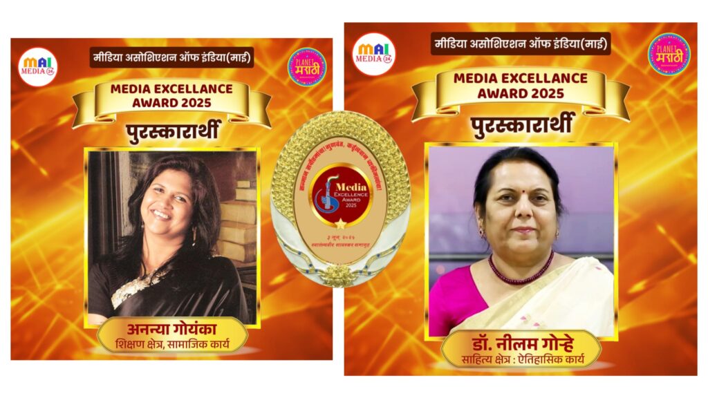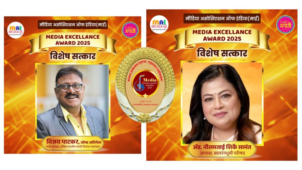 ‘मीडिया उत्कृष्टता पुरस्कार 2025’ उन व्यक्तियों को प्रदान किया जाएगा जिन्होंने कला, सामाजिक और राजनीति जैसे विभिन्न क्षेत्रों में अपनी पहचान बनाई है। पुरस्कार समारोह 3 जून को दोपहर 3 बजे दादर स्थित स्वातंत्र्यवीर सावरकर हॉल में आयोजित किया जाएगा। इस अवसर पर विधान परिषद के सभापति प्रो. राम शिंदे, उपमुख्यमंत्री एकनाथ शिंदे, पद्मश्री, महाराष्ट्र भूषण से सम्मानित वरिष्ठ अभिनेता अशोक सराफ, अखिल भारतीय मराठी फिल्म महामंडल के पूर्व अध्यक्ष अभिनेता विजय पाटकर, बाल रंगमंच परिषद की अध्यक्ष नीलम शिर्के-सामंत और अन्य गणमान्य व्यक्तियों का ‘विशेष अभिनंदन’ किया जाएगा।