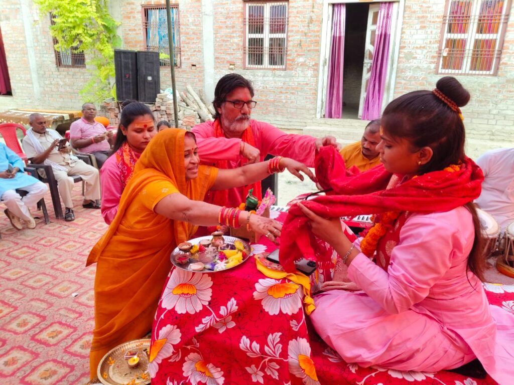 जौनपुर, संवाददाता : उत्तर प्रदेश जौनपुर जिला स्थित मुंगरा बादशाहपुर के आश्रय धाम में आयोजित धार्मिक कार्यक्रम में बाल विदुषी शिवानी किशोरी जी ने भजनों का ऐसा समां बांधा कि वहां उपस्थित श्रद्धालुओं ने भारी करतल ध्वनि से उनका स्वागत किया । उपलब्ध जानकारी के अनुसार जौनपुर के आश्रय धाम में ट्रस्ट द्वारा नवरात्र उत्सव कार्यक्रम आयोजित किया गया था । इस कार्यक्रम में बाल विदुषी शिवानी किशोरी जी को भजन संध्या के लिए आमंत्रित किया गया था ।इस अवसर पर शिवानी ने भजनों की ऐसी पेशकश किया कि वहां उपस्थित जनसमुदाय मंत्र मुग्ध हो गया ।लोग किशोरी जी के गीतों पर थिरकने लगे। आश्रय धाम ट्रस्ट के महंत महेश योगी ने उपस्थित अतिथियों को सुंदर काण्ड की पुस्तक तथा रामनामी दुपट्टा भेंट कर उन्हें सम्मानित किया ।इस अवसर पर चंद्रभान महराज, पंडित उमा शंकर तिवारी, दिनेश पांडेय, अशोक मिश्रा, आदर्श दूबे, अनुराग मिश्र,आर एल यादव, गुड्डू प्रधान,मुकुंदलाल शुक्ला, शेषमणि मौर्य, कृष्णाकांत शुक्ला, डाक्टर कैलाश पाल, उमाकांत शुक्ला, मनोज पाण्डेय राकेश रंजन, तुलसी राम मिश्र, सुरेन्द्र तिवारी सहित कई अन्य गणमान्य व्यक्ति उपस्थित थे । कार्यक्रम समापन पर महाभंडारे का आयोजन किया गया । जहां सैकड़ों श्रद्धालुओं ने महाप्रसाद का लाभ उठाया । आश्रय धाम ट्रस्ट ने कार्यक्रम में सहयोग करने वाले सभी ट्रस्टियों डॉ राधेश्याम गुप्ता, श्री राधे श्याम पांडेय, श्री मधुकुमार राठी, धर्मेंद्र सिंह, सरदार कल्लू सिंह सहित सभी ट्रस्टियों का आभार व्यक्त किया है ।