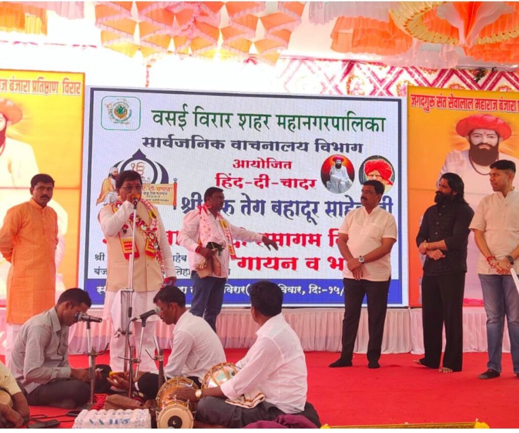 इसी तरह, 15 फरवरी को, वसई विरार सिटी म्युनिसिपल कॉर्पोरेशन पब्लिक लाइब्रेरी डिपार्टमेंट द्वारा बंजारा समाज मनवेलपाड़ा के साथ मिलकर श्री गुरु तेग बहादुर साहिबजी और बंजारा समाज के बीच ऐतिहासिक रिश्ते पर एक गायन और भजन प्रोग्राम आयोजित किया गया था। इस प्रोग्राम में वसई विरार सिटी म्युनिसिपल कॉर्पोरेशन के माननीय मेयर श्री अजीव पाटिल मौजूद थे। म्युनिसिपल कॉर्पोरेशन के कई गायक और कर्मचारी भी मौजूद थे।